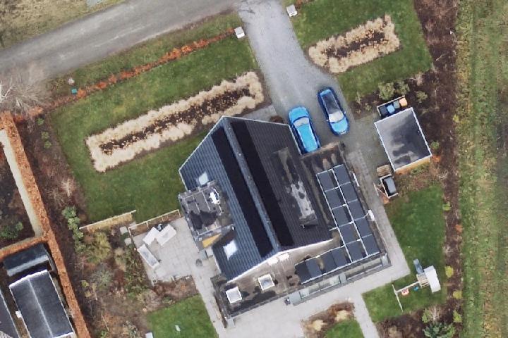 Meet exacte afstanden en oppervlakte van bijvoorbeeld de tuin met behulp van de luchtfoto en kadastrale grenzen.